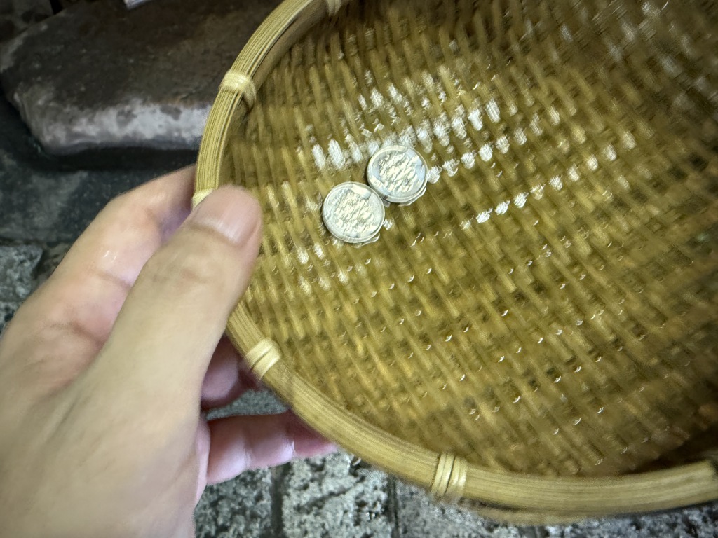 ざるを使って、お金を洗います。お札を洗っている人もいましたね。