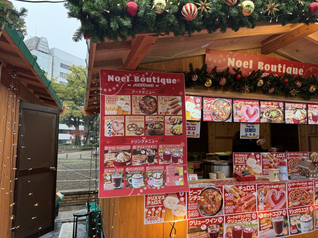 沢山の小屋が見えますね。この雰囲気は、本場ドイツのクリスマスマーケットを思い出します。明らかに夜に来た方がきれいなんでしょうけど、本日はジョギングの途中に寄ったので、お昼でした。