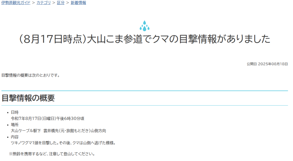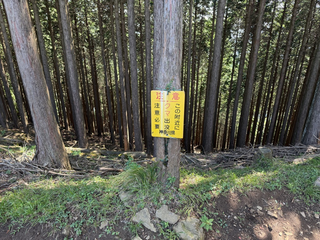 さて、阿夫利神社方面へ進もうとすると、こんな看板が。マジか!だからクマの鈴をつけている人がいたのか(ここで知りました💦)