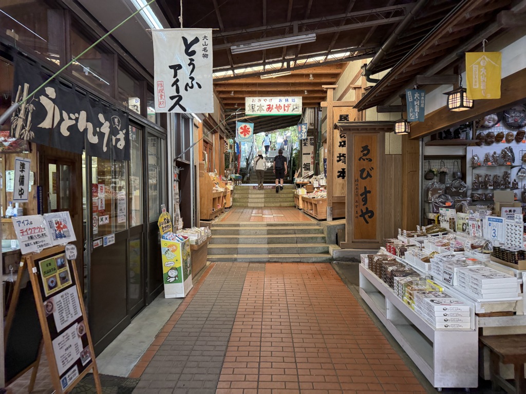 大山ケーブル駅まで行く途中、こま参道を通り抜けました。徒歩15分、362段の階段をあがっていきます。一気に旅気分!