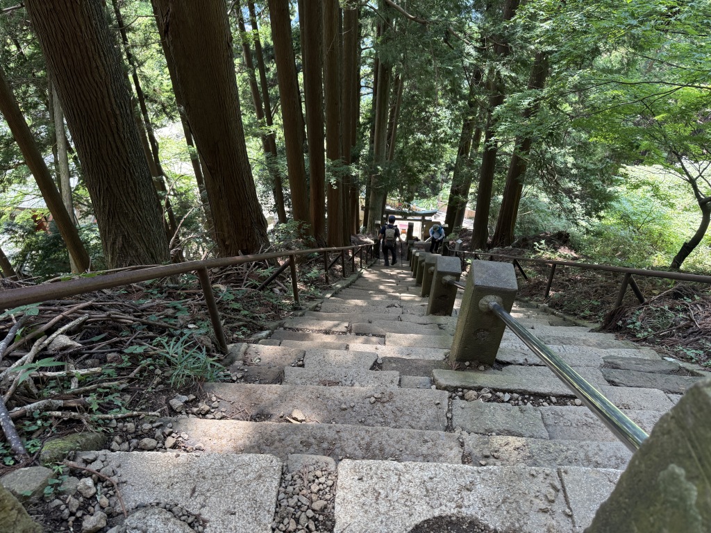 コチラはまだスタート地点にほど近い、神社付近の階段。振り返ってみると、割と急こう配。