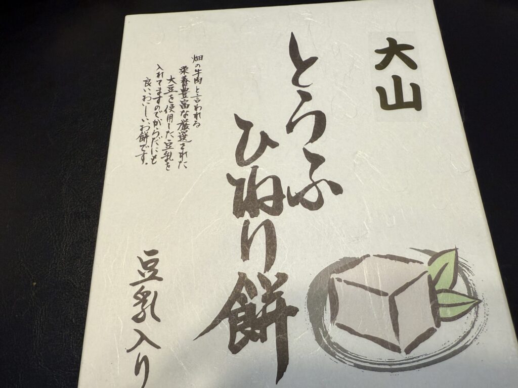おみやげとして「とうふひねり餅」。この辺は水がきれいなので、豆腐の名産地のようです。